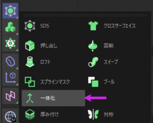 - 一体化オブジェクトを非表示に切り替える。クローンのみが表示される。