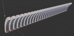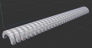 - 立方体を新規作成。サイズを(30cm,200cm,30cm)とし、Y方向の分割数を「92」とする。