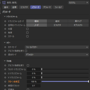 クローンがフィールドの影響を受けるようになった。フィールドを動かしてみる。それに合わせてクローンの曲がり具合の強度が調整されているのが分かる。