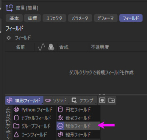 - 簡易エフェクタの[フィールド]タブで「球体フィールド」を追加。